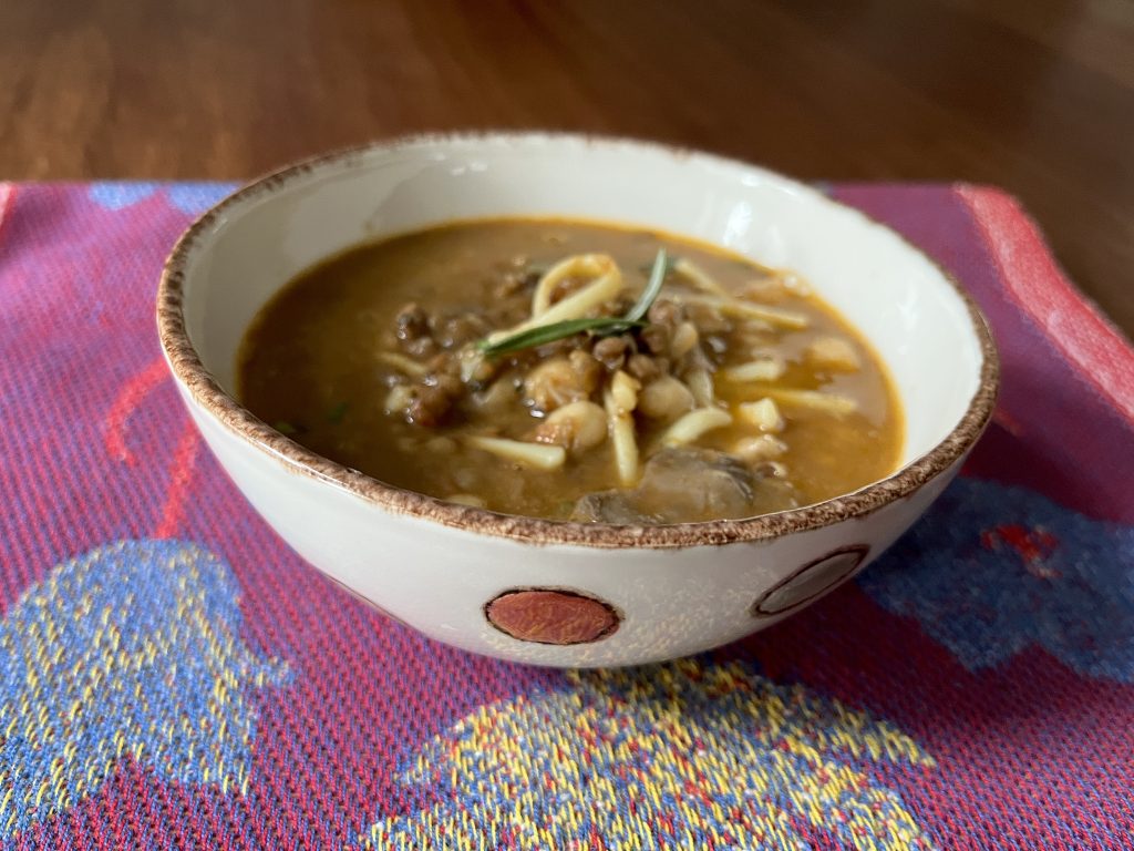 Ovo je još jedna od mediteranskih čorbi sa mahunarkama, mesom, povrćem i šakom, grubo odlomljenih špageta ili sitnijih rezanaca. Dakle, savršena kombinacija mesnih i biljnih proteina i ugljikohidrata, nazvana od strane nutricionista  najzdravijim jelom koje nam tradicionalna prehrana donosi na naše suvremene trpeze. Pri tome treba dodati da se radi  o jako ukusnom jelu, zasitnom te ekonomičnom.