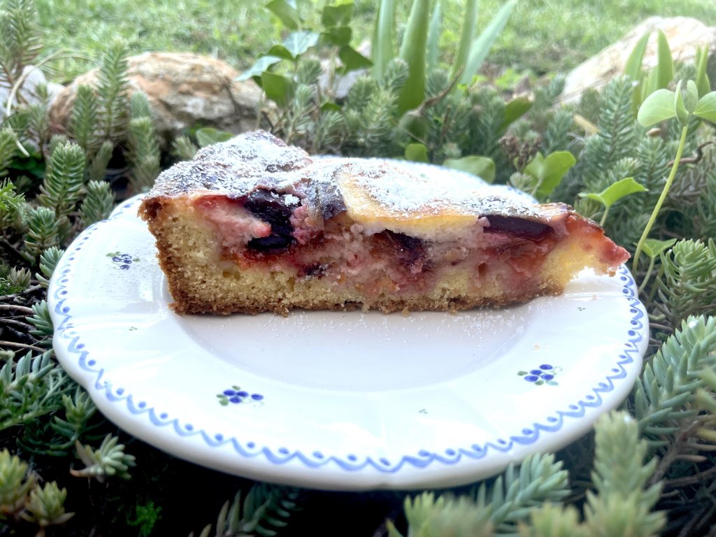 Ovaj recept objavila sam  pred više od desetak godina u “Gloriji” i tada je bio sa šljivama. Ovako zamišljena pita sa preljevom idealna je za sva kiselkasta voća – tako je osim marelica i šljiva, posebno dobra sa višnjama maraskama.